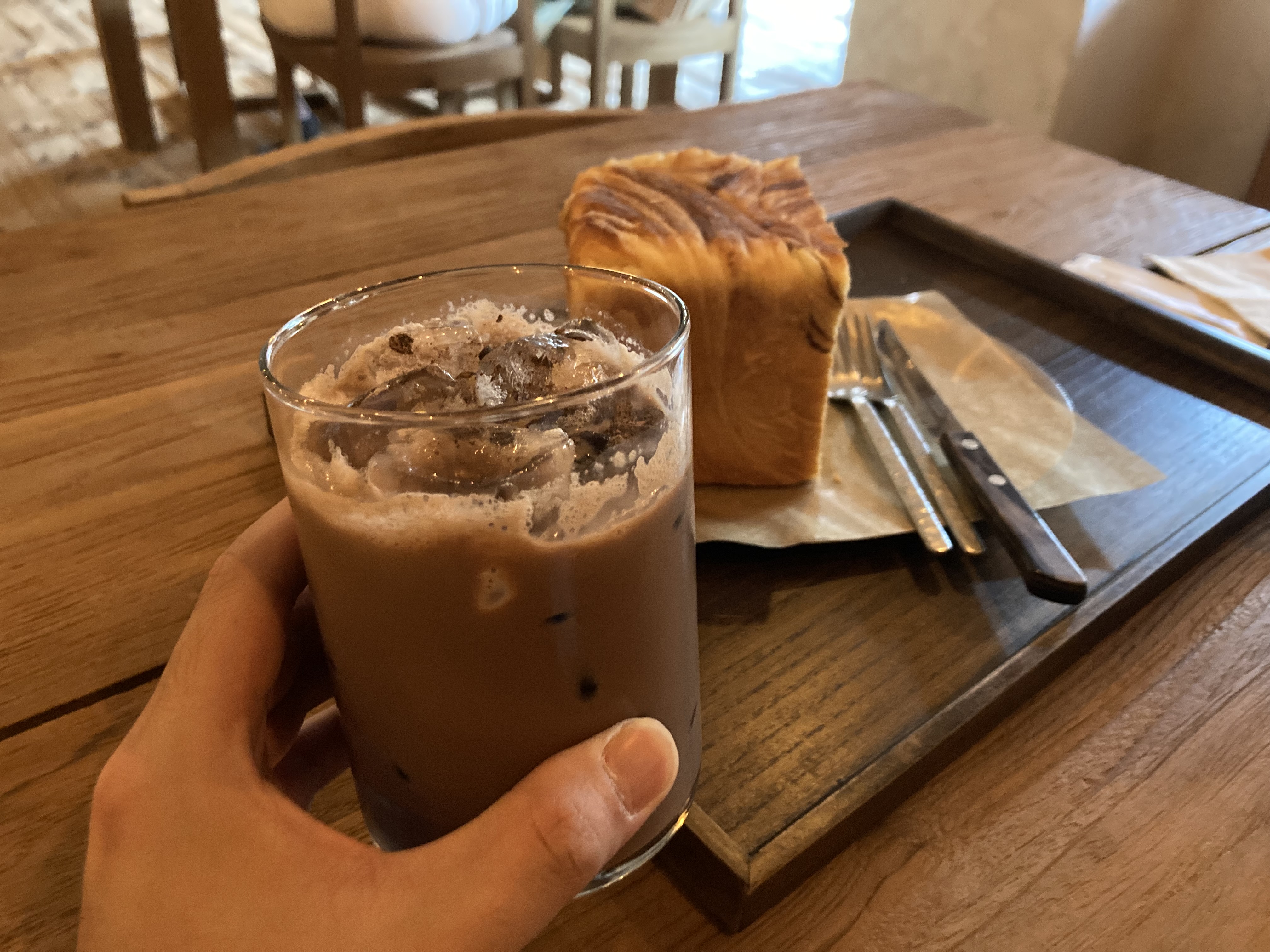 아이스 초코와 함께 식빵을 먹으면 달달한이 2배가 된다. 정말 맛있고 고소하다.